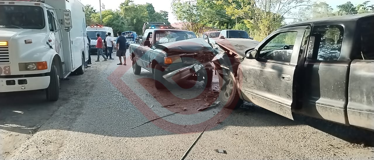 El accidente lo protagonizaron dos unidades motoras, una camioneta Ford Ranger, color verde y una Dodge Dakota color negro, en donde presuntamente uno de los conductores invadió carril contrario y sobrevino el percance.