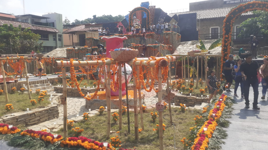 Huejutla, Hgo.- El presidente municipal, José Alfredo San Román Duval, y la presidenta del DIF municipal, Hilda Kristel Rodríguez Flores, realizaron la ofrenda a los niños; en la celebración del “Mijkailjuitl” (fiesta de los muertos).