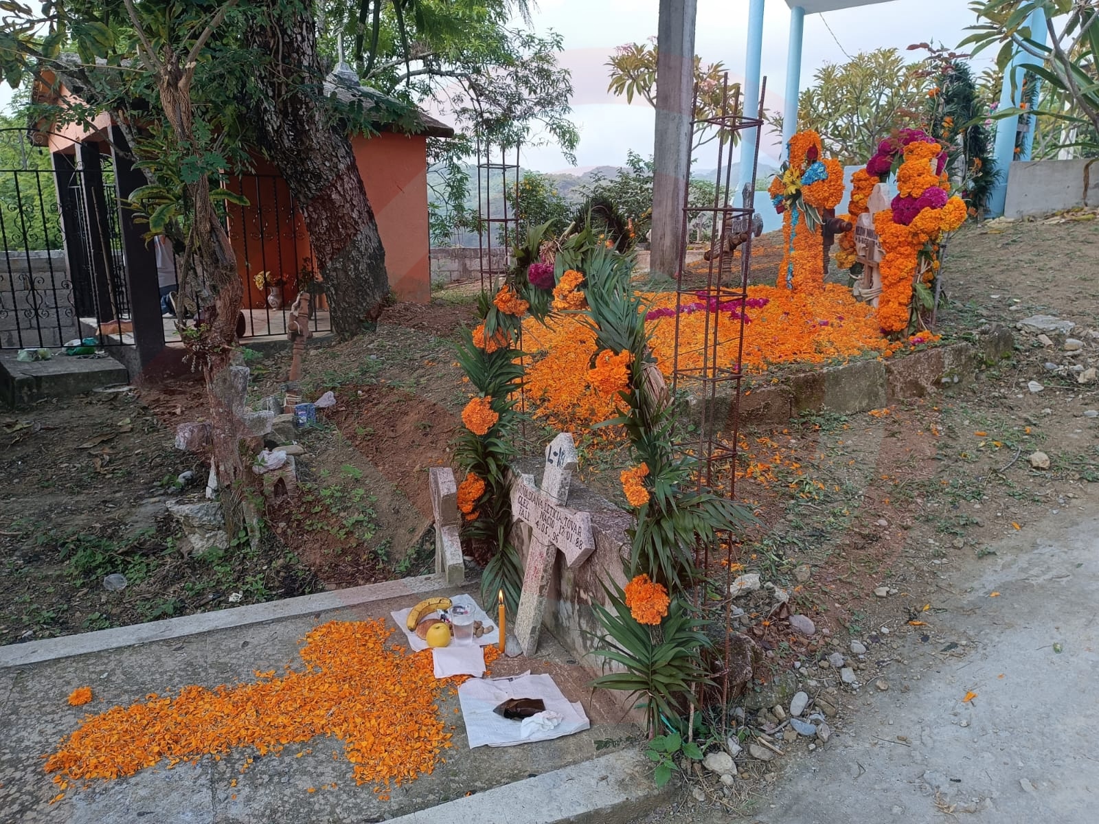 Las tumbas lucen adornadas con flor de cempasúchil, mano de león, coronas, imágenes, dulces o juguetes, en caso de los menores de edad ya fallecidos, y todo lo que le gustaba en vida al difunto.