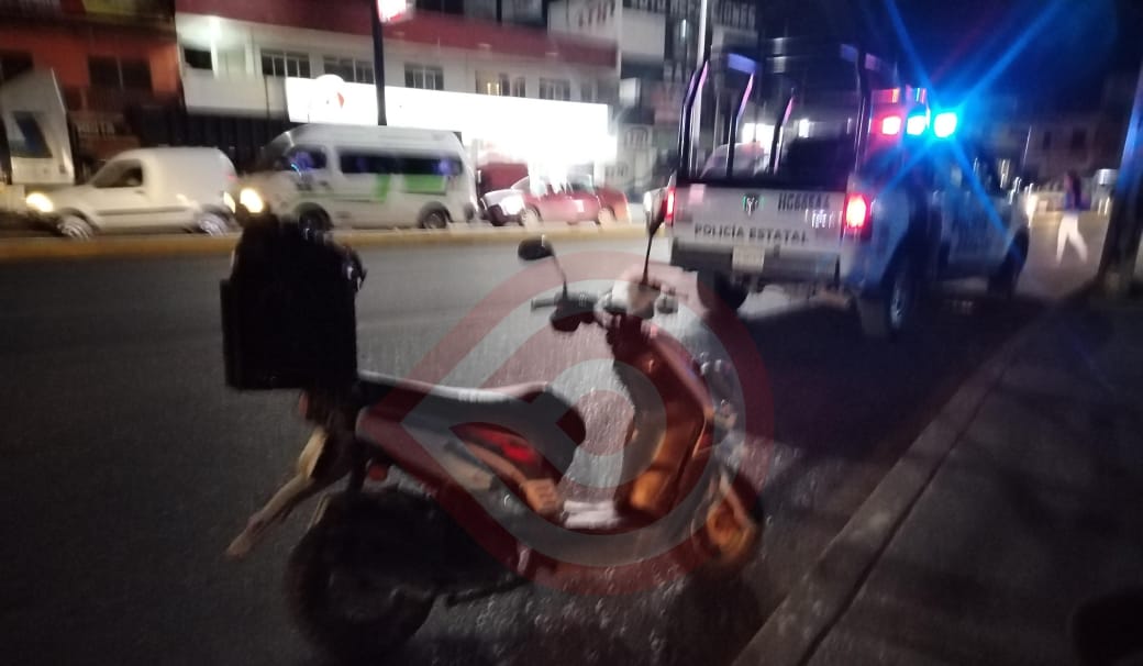 El incidente ocurrió la noche del martes, sobre el crucero de la ex glorieta Hidalgo de esta ciudad, donde el conductor de un automóvil Volkswagen, color negro, al transitar sobre el lugar atropelló al masculino que iba en motoneta.
