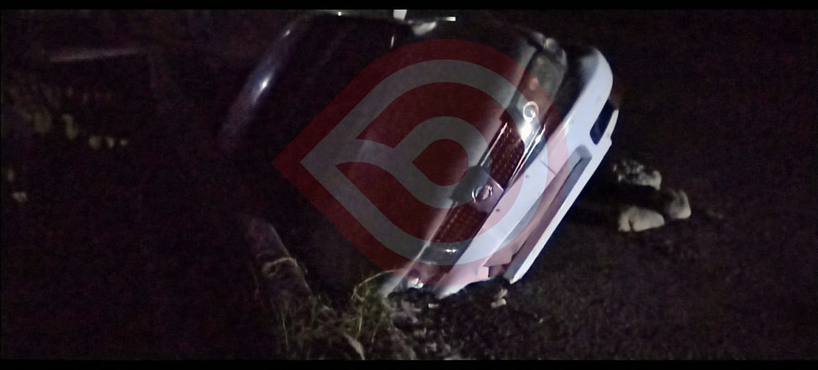 Fue la noche del pasado jueves que se registró este incidente donde un vehículo Nissan tipo Tsuru color blanco se fue a un socavón que esta sobre esa carretera desde el pasado 1 de julio de esta anualidad, una cadena de concreto evitó que el vehículo se fuera a un abismo profundo.