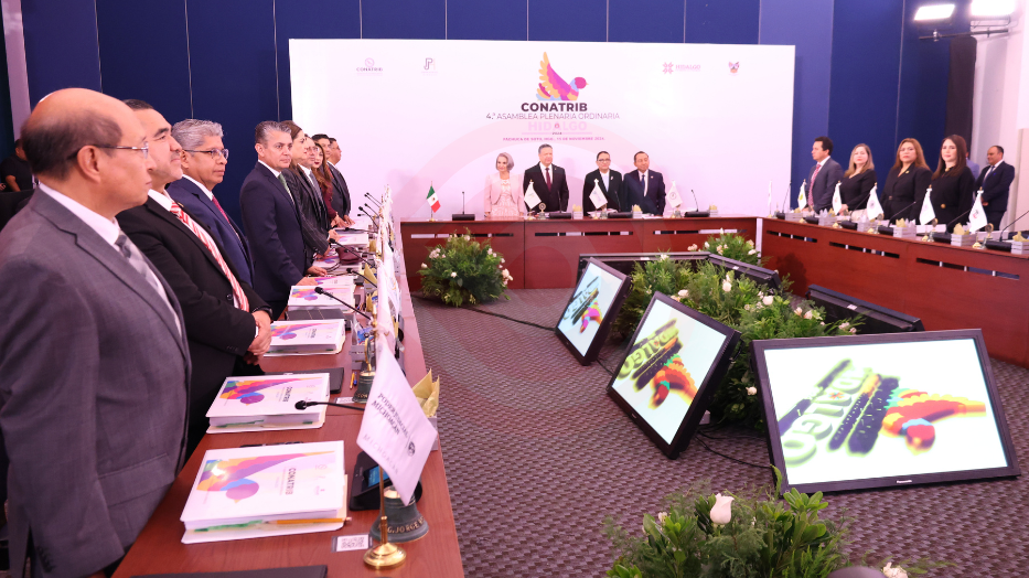 Pachuca de Soto, Hgo.- El gobernador Julio Menchaca Salazar asistió como testigo de honor a la inauguración de la Cuarta Asamblea Plenaria Ordinaria de la Comisión Nacional de Tribunales de Justicia de los Estados Unidos Mexicanos, CONATRIB 2024.