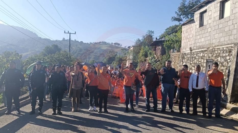 Tlanchinol, Hgo.- En el marco del día naranja, día en el que se busca generar conciencia sobre la prevención y erradicación de la violencia contra mujeres y niñas, la Mtra. Anabel Mateos Sánchez, presidenta del SMDIF de Tlanchinol, fue copartícipe de una caminata en la localidad de Hueyapa; la cual se realizó como símbolo de rechazo a cualquier tipo de violencia que sufren mujeres y niñas en todo el mundo.