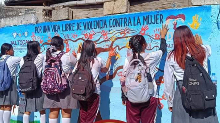 Jaltocán, Hgo.- El Sistema Municipal DIF en coordinación con la Instancia de la Mujer y las diferentes áreas del H. Ayuntamiento se suman a la conmemoración del “día internacional de la eliminación de la violencia contra la mujer”,  a través de un mural en donde se plasmaron las manos.