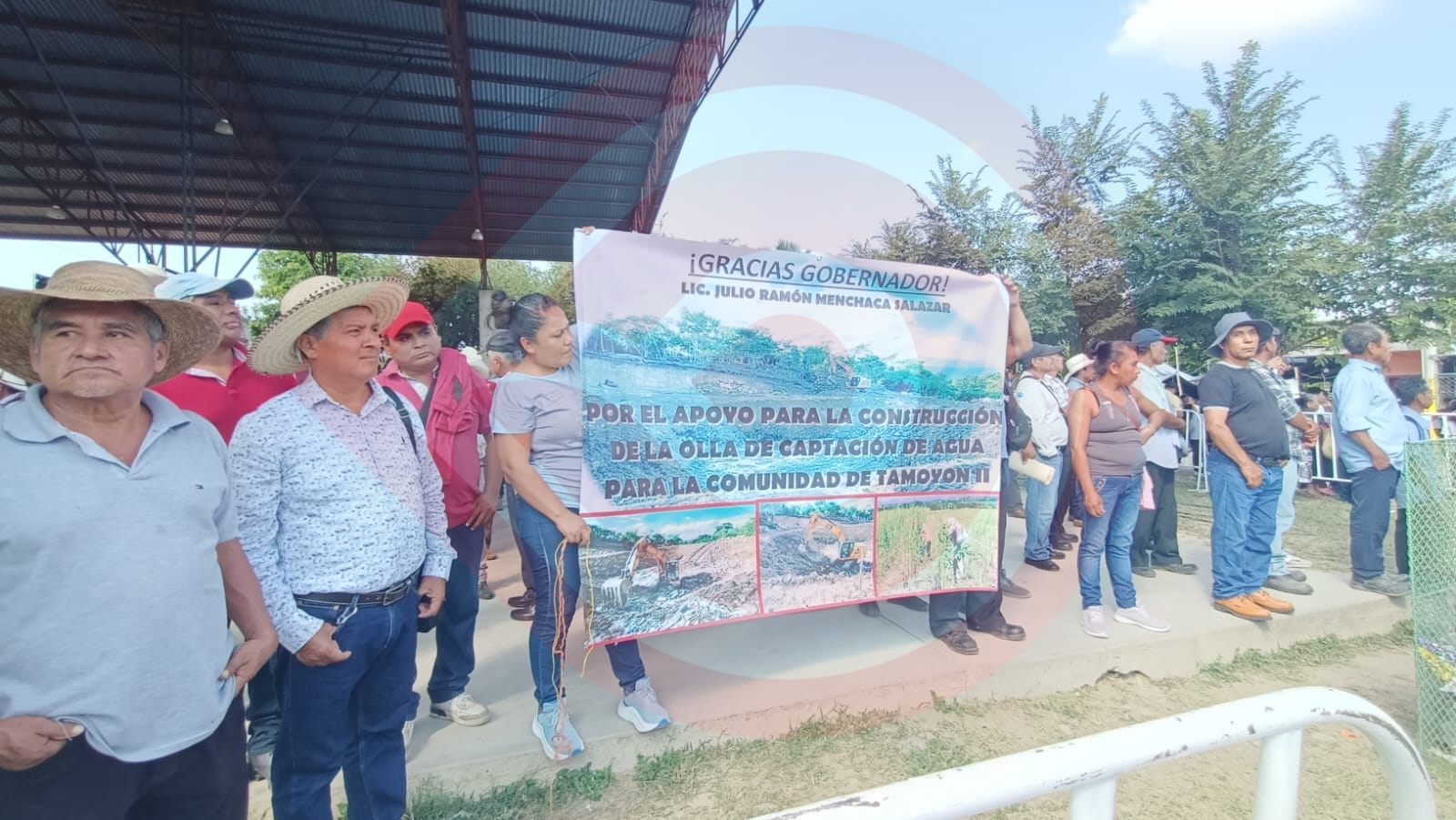 El presidente del comité de obra, Enrique de La Cruz Osorio, junto con un grupo de ciudadanos, a través de una lona hicieron de conocimiento al mandatario estatal sobre su agradecimiento por la construcción de una olla de captación de agua, obra que es necesaria para los meses de abril y mayo, ya que son las épocas donde sufren los estragos de la sequía.
