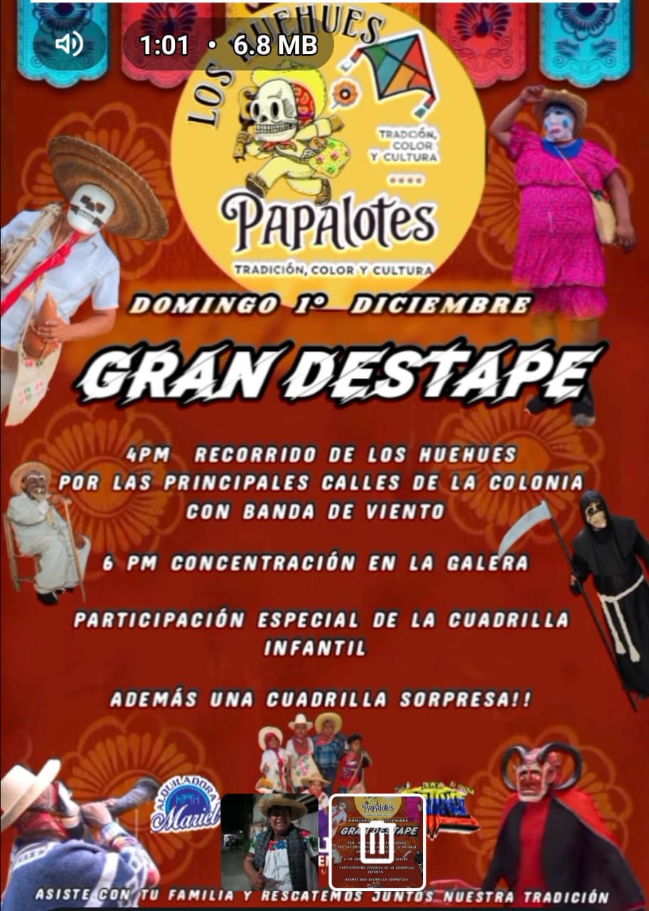 Por todo ello, invita a la población en general para que acuda a este singular evento del Destape de disfrazados de los Huehues de Papalotes, en donde se tiene como principal objetivo el fortalecer y rescatar la tradición cultural.