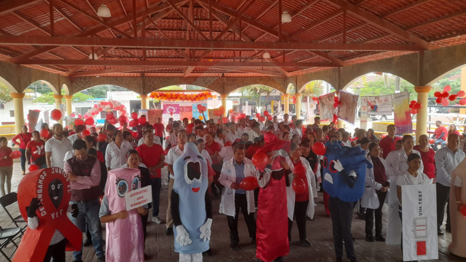 Atlapexco, Hgo.- Con una marcha que partió a las 10:00 horas, de las instalaciones de la Clínica de Salud IMSS Bienestar y concluyó en la galera de usos múltiples, conmemoró este lunes personal médico destacado en el municipio, empleados del Ayuntamiento y alumnos del CECyTEH, el “Día Mundial del VIH (SIDA).