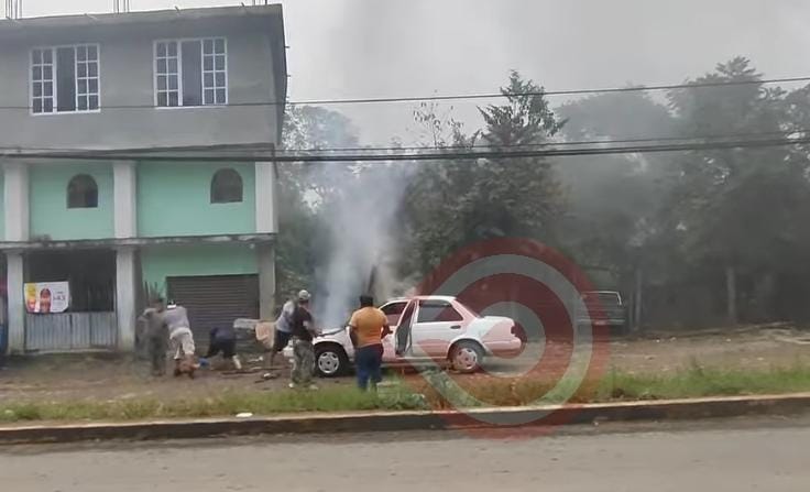 Fue aproximadamente a las 15:00 horas, de este viernes, cuando a la unidad Nissan Tsuru le comenzó salir humo del motor y en minutos ardió en llamas. El chófer solicitó el apoyo de los vecinos de Tepexititla para apagar el fuego logrando controlarlo.