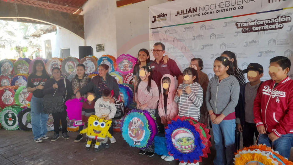 Por tal motivo, en evento realizado este lunes en la galera de usos múltiples denominado “Piñatón 2024”, el diputado local del Distrito 03, Julián Nochebuena Hernández, llevó a cabo la entrega simbólica de piñatas de colores vivos y llamativos, gestionadas por los interesados a través de solicitudes.