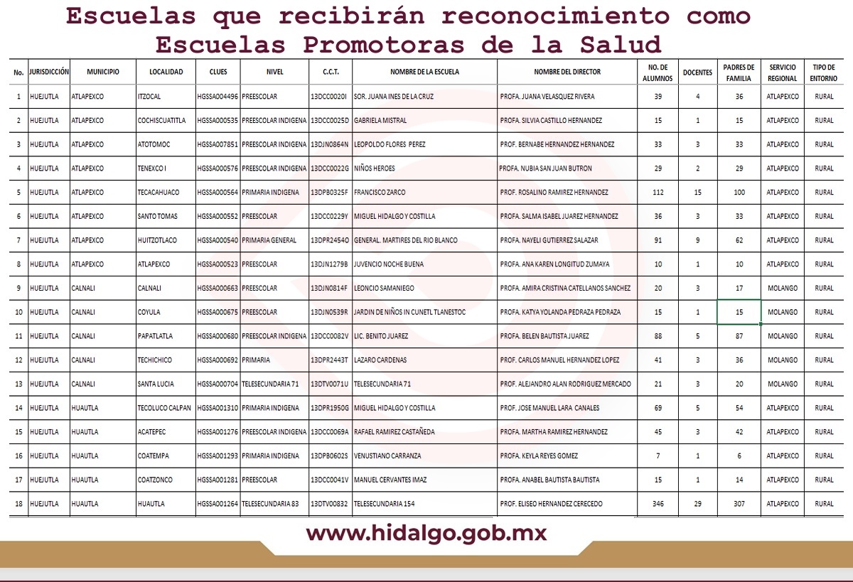 Desde su surgimiento a fines de los años 80, esta estrategia ha sido un modelo de éxito promovido por la Organización Mundial de la Salud (OMS) y la Organización Panamericana de la Salud (OPS). Hoy en día, estas escuelas en Huejutla trabajan como agentes de cambio, implementando políticas que benefician la dignidad, el bienestar individual y colectivo de estudiantes, docentes y familias.