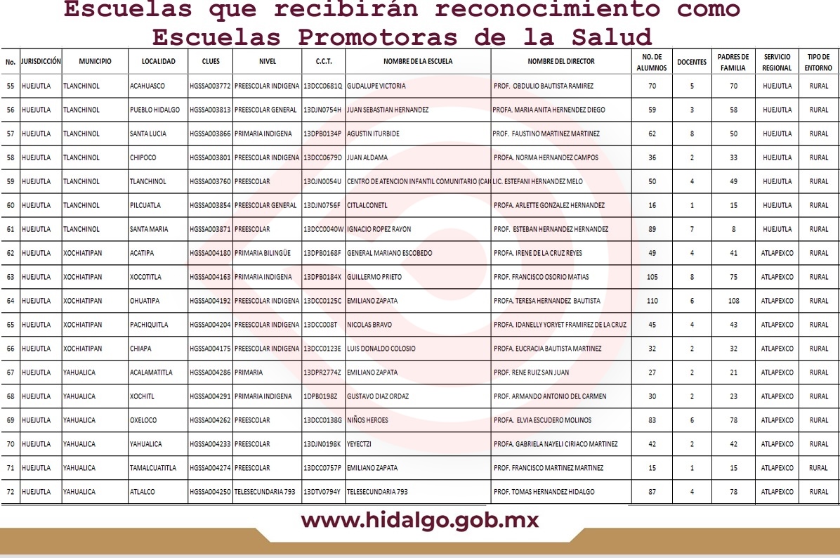 Huejutla, Hgo.- En un emotivo evento realizado en la Jurisdicción Sanitaria de Huejutla, 72 escuelas de nivel básico recibieron su certificación como Escuelas Promotoras de la Salud, marcando un hito en la promoción del bienestar y la prevención de enfermedades en la región.
