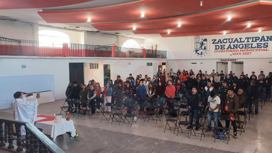 El acto inició con la llegada de la imagen de la Virgen, símbolo de unión y esperanza para la comunidad, donde se llevó a cabo una misa, posteriormente se realizó un convivio en el mismo auditorio.