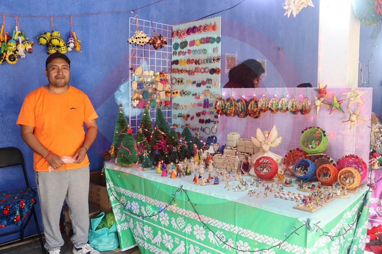 El titular de la Sebiso, Ricardo Gómez Moreno, visitó a las y los artesanos que prepararon material para esta temporada decembrina, a fin de asegurarse que estuvieran bien instalados, que no les faltara nada, y que su estancia en dicho evento sea de beneficio para la economía de sus familias.