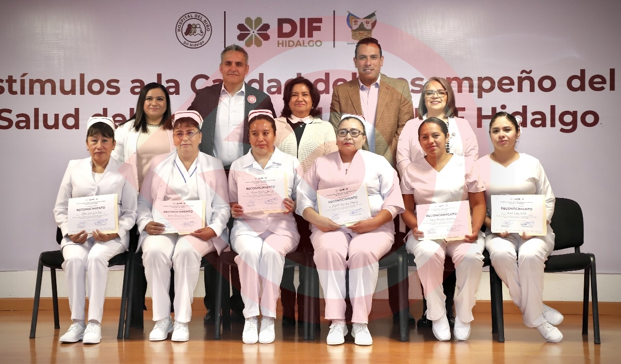 Pachuca, Hgo.- En un importante acto realizado en el Hospital del Niño DIFH (HNDIF), Edda Vite Ramos, presidenta del Patronato del Sistema DIF Hidalgo, reconoció el compromiso, entrega y dedicación de siete mujeres que a través de su trabajo en el área de la salud han mejorado la vida de los pacientes más pequeños del estado. Esto ocurrió durante la entrega de Estímulos a la Calidad del Desempeño del Personal de Salud.