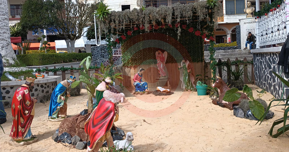 Zacualtipán de Ángeles, Hgo.- Personal colaborador de la administración pública encabezada por el alcalde con licencia Amado Pérez Hernández, trabajaron a marchas forzadas durante toda la semana para la conclusión de los trabajos relacionados con la colocación y decoración del pino navideño, además de la elaboración de un Nacimiento que fueron colocados en la Plaza del Pueblo.