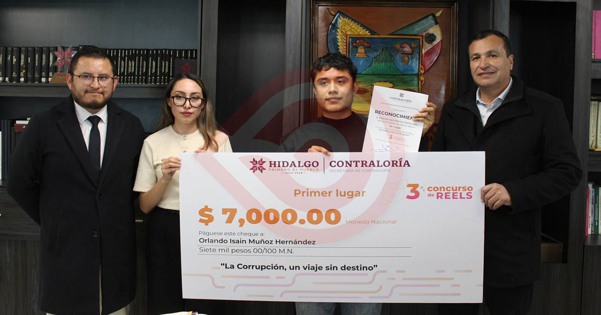 Pachuca de Soto, Hgo.- La Contraloría hidalguense, continúa con el trabajo para reforzar la lucha contra la corrupción, como una de las líneas claves de la administración de Julio Menchaca, a través de la participación juvenil, al realizar la tercera edición del concurso de reels “El Pueblo contra la Corrupción 2024”.