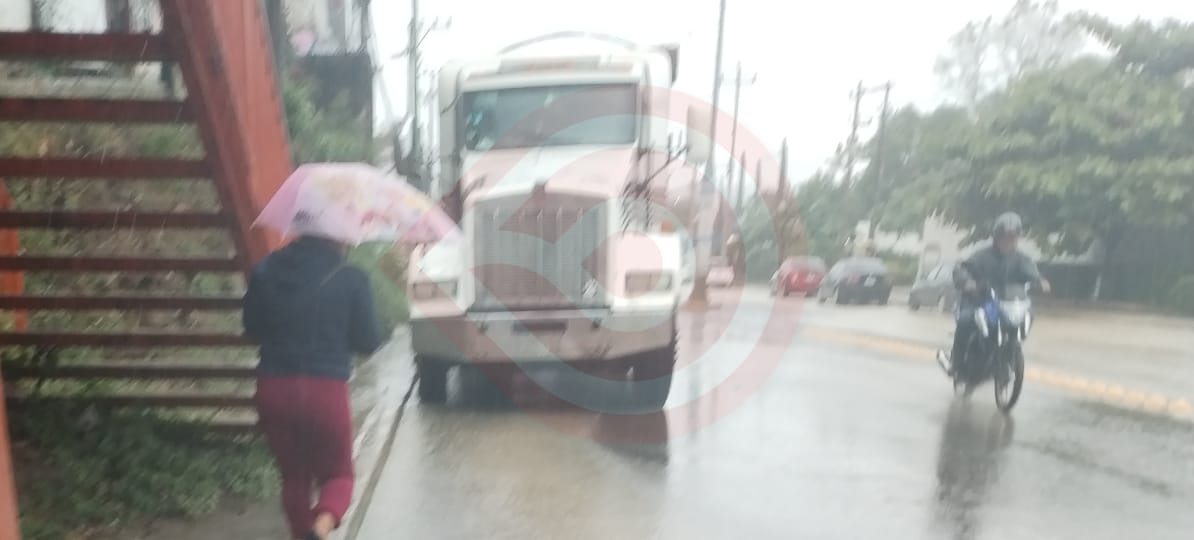 Huejutla, Hgo.- Un accidente que se registró la tarde de este jueves estuvo a punto de terminar en tragedia donde un tráiler estuvo a punto de aplastar un automóvil sobre el bulevar central en frente de la escuela Normal de las Huastecas.