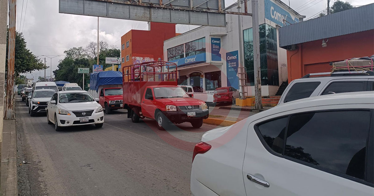 Tráfico vehicular complicado por las principales calles de Huejutla