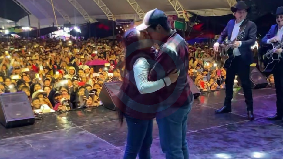 Huejutla de Reyes, Hgo.- A mitad del concierto de Los Plebes del Rancho de Ariel Camacho, el huautlense Elías Vite San Juan subió al escenario para compartir un momento personal con todos los asistentes, en el escenario invitó a su novia Lizbeth Hernández para hacerle la proposición de matrimonio.