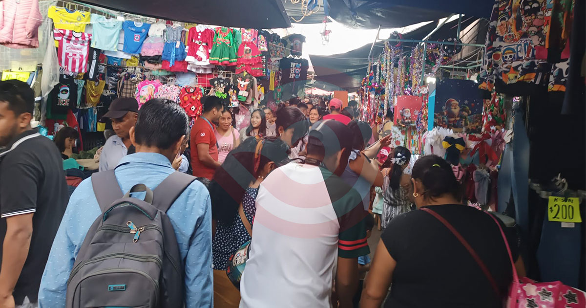 Tianguis abarrotado por compras de Nochebuena y Navidad