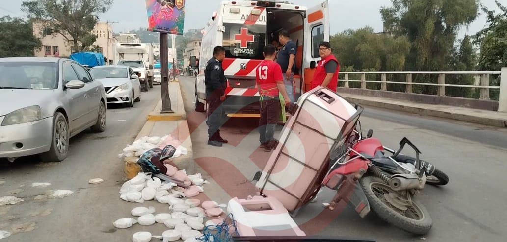 Huejutla, Hgo. – Conductor de una urvan que circulaba sobre el bulevar central a la altura del puente Reséndis de esta ciudad, atropelló a un mototortillero dejándolo con varias lesiones y daños materiales, oficiales de la policía municipal intervinieron en este hecho.