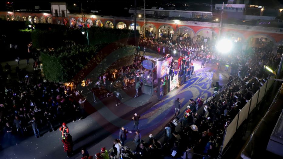 La cabalgata dio inicio a las 8:00 de la noche en la Plaza Juárez, frente a la Presidencia Municipal; donde los Tres Reyes Magos abrieron paso a 19 carros alegóricos iluminados y musicalizados, que aportaron un toque decembrino al recorrido. Además, las comparsas de bailarines, botargas y personajes ofrecieron un derroche de color y energía en un espectáculo único y dinámico.