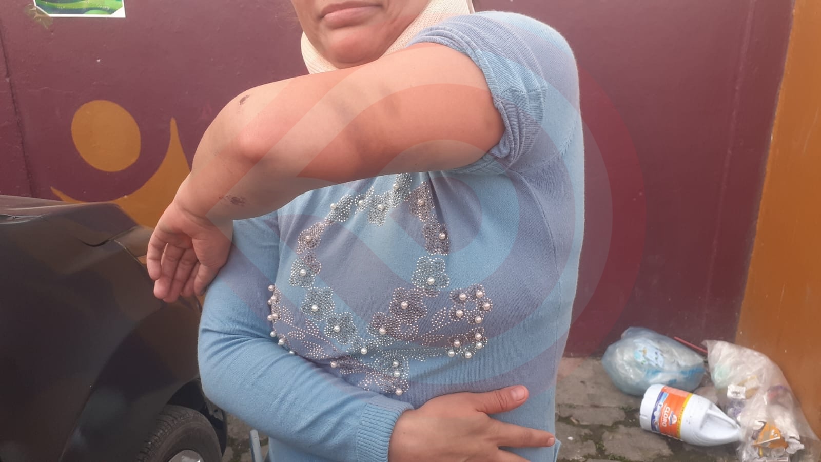 H. A. D. P. la agredió físicamente, con golpes contusos en diferentes partes del cuerpo, además de ser amenazada con arma de fuego (apócrifa) la intentó estrangular y gracias a la intervención de algunos vecinos no consiguió su cometido.