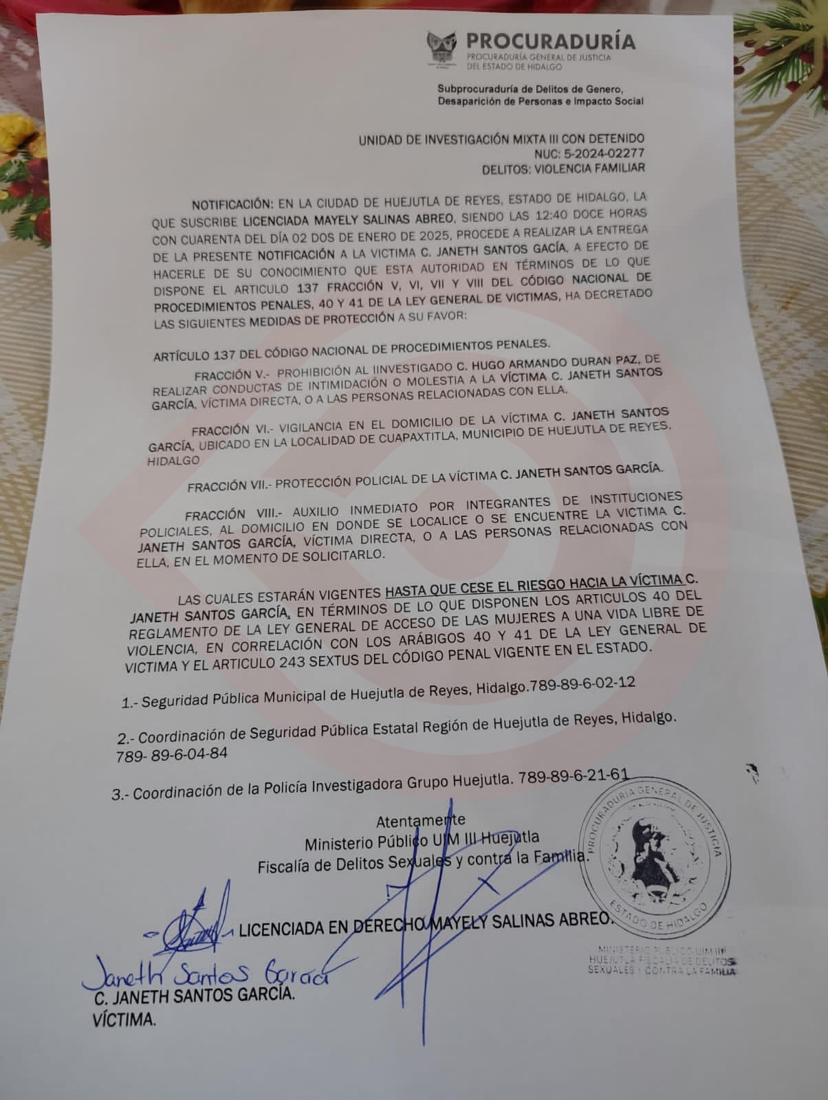 Para finalizar, J. S. G. pide a las autoridades reclasificar el delito de violencia familiar por intento de homicidio o intento de feminicidio, ya que estuvo a punto de perder la vida a manos de su expareja sentimental.