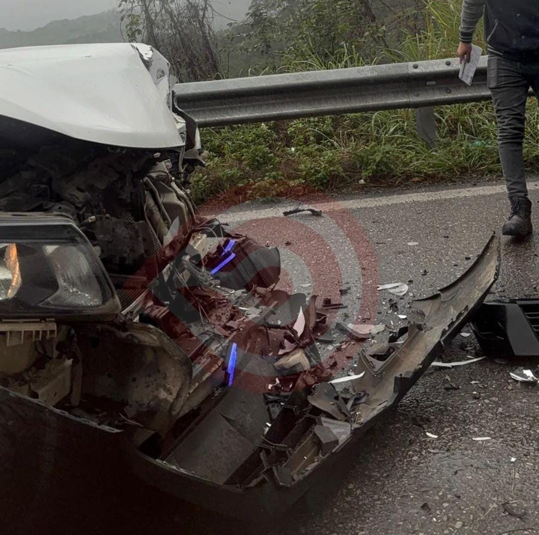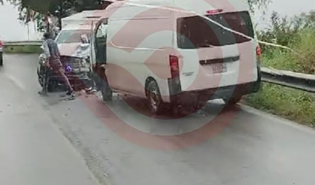 El accidente ocurrió derivado del exceso de velocidad y la cinta húmeda, en donde una camioneta Nissan con redilas invadió el carril contrario y se impactó con una Urvan, Nissan, color blanco, dejando a los conductores con lesiones leves.