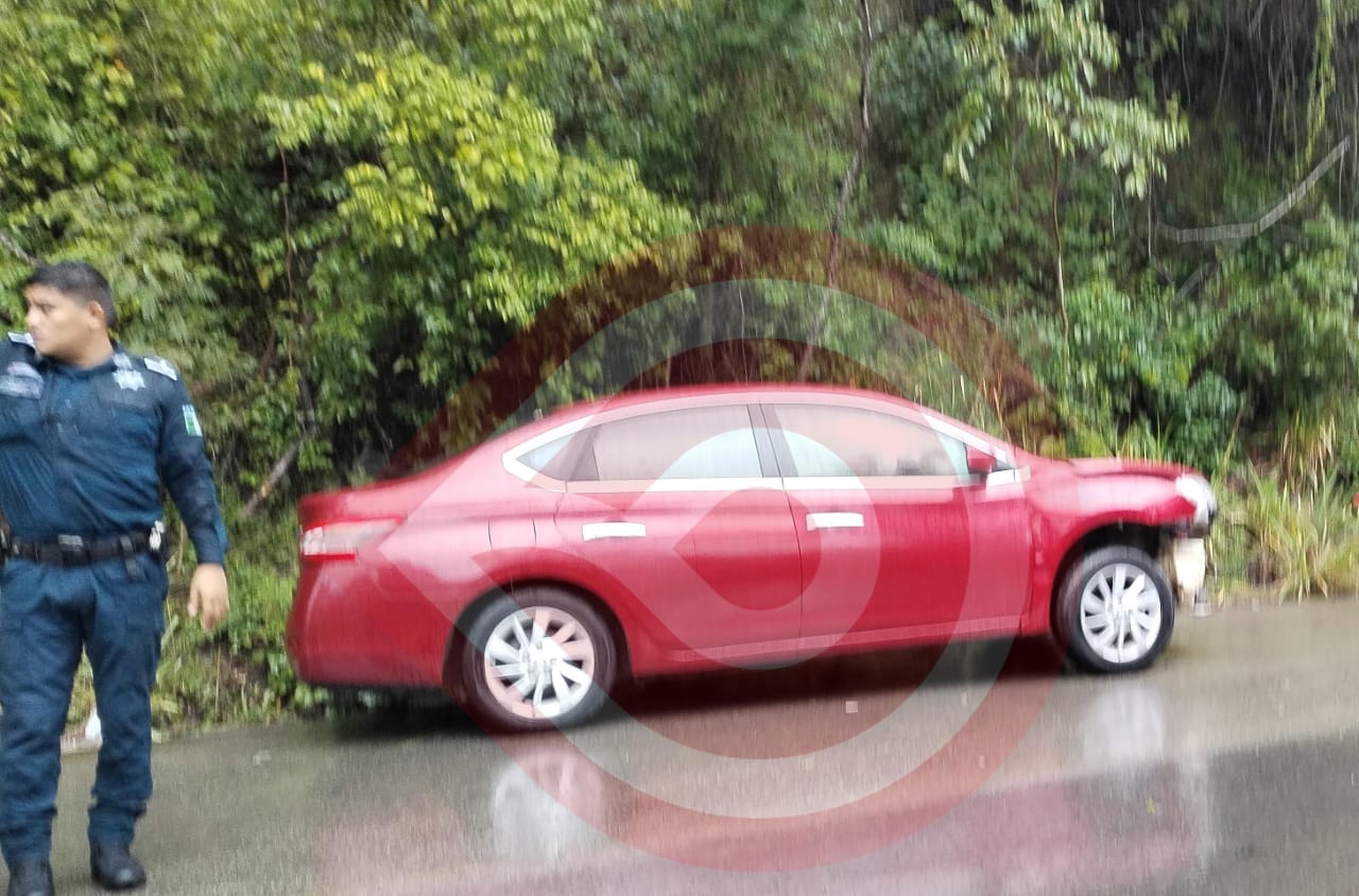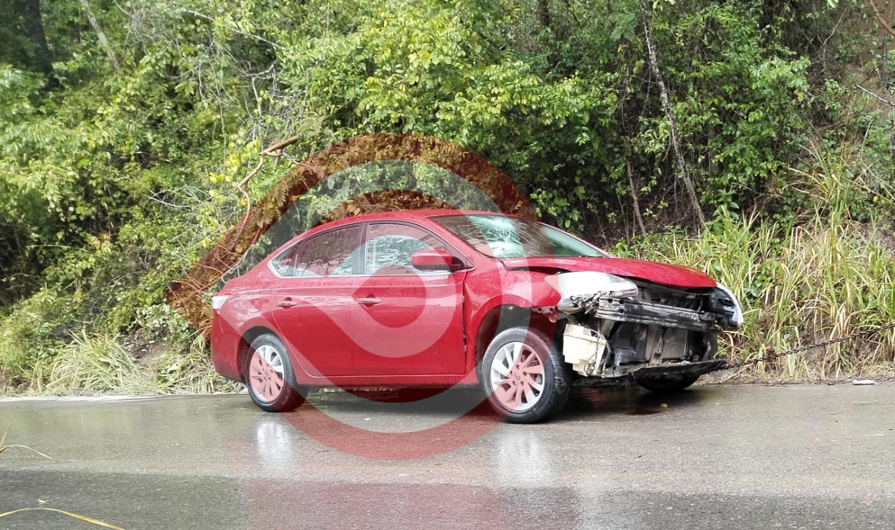 El accidente ocurrió delante del crucero tres Huastecas con dirección a Atlapexco, en donde un automóvil Nissan tipo versa color rojo sufrió una estrepitosa salida de camino por el exceso de velocidad y la cinta asfáltica húmeda, hasta terminar en la cuneta.
