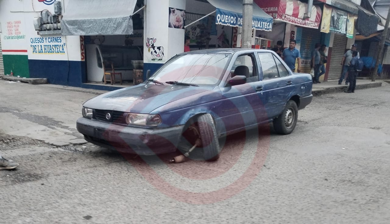 Huejutla, Hgo.- Un automóvil al transitar sobre la calle constituyentes, se le zafó una llanta, lo cual estuvo a punto de ocasionar una accidente, pero por fortuna el conductor logró detener la unidad y pedir apoyo vial.