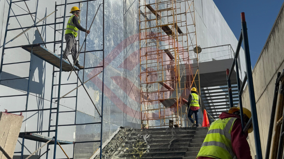 De igual manera, suministro y colocación de película esmerilada en fachadas, retiro de pintura, así como la aplicación de pintura tras bambalinas.
