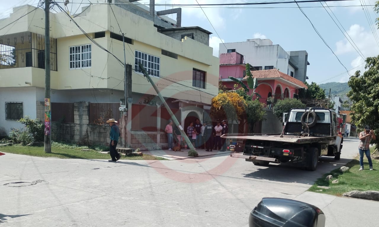 El vehículo gasero circulaba sobre la calle Hidalgo, al intentar dar la vuelta sobre la calle Chilpancingo se subió a la banqueta y se llevó el poste de madera que terminó retachado en una vivienda, rompiendo algunos vidrios; rápidamente los vecinos pidieron el apoyo de la Policía Municipal.