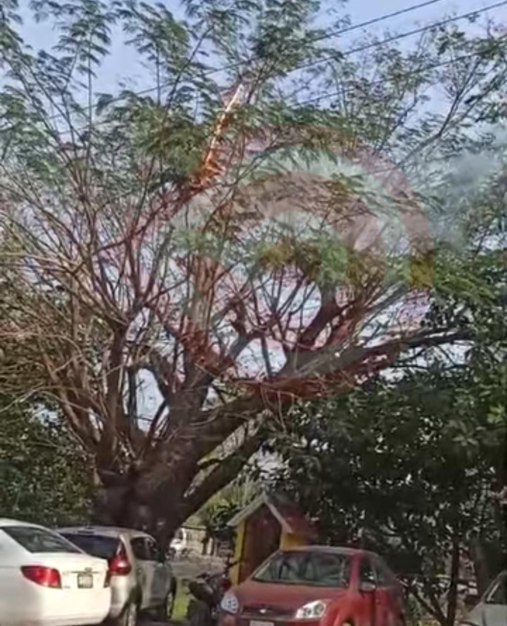 Santa Felipe Orizatlán, Hgo. – Un incendio por cortocircuito de cables con ramas de un árbol, que se registró en la Unidad deportiva, generó alarma y puso en riesgo vehículos automotores, así como personas que estaban en ese lugar; al sitio llegaron elementos de Protección Civil (PC) municipal para intervenir en el hecho.