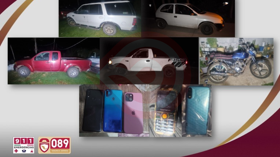 En el operativo, fueron asegurados una mujer que responde a las siglas Y. B. E., y cuatro hombres de siglas L. L. D. J. M., B. T. P., J. A. L. C. y, J. P. L. S., alías “El Alemán”, así como tres armas cortas y seis armas largas listas para usarse, tres cargadores abastecidos, 66 cartuchos útiles, pólvora, un chaleco balístico, cuatro automóviles y motocicletas sin placas.