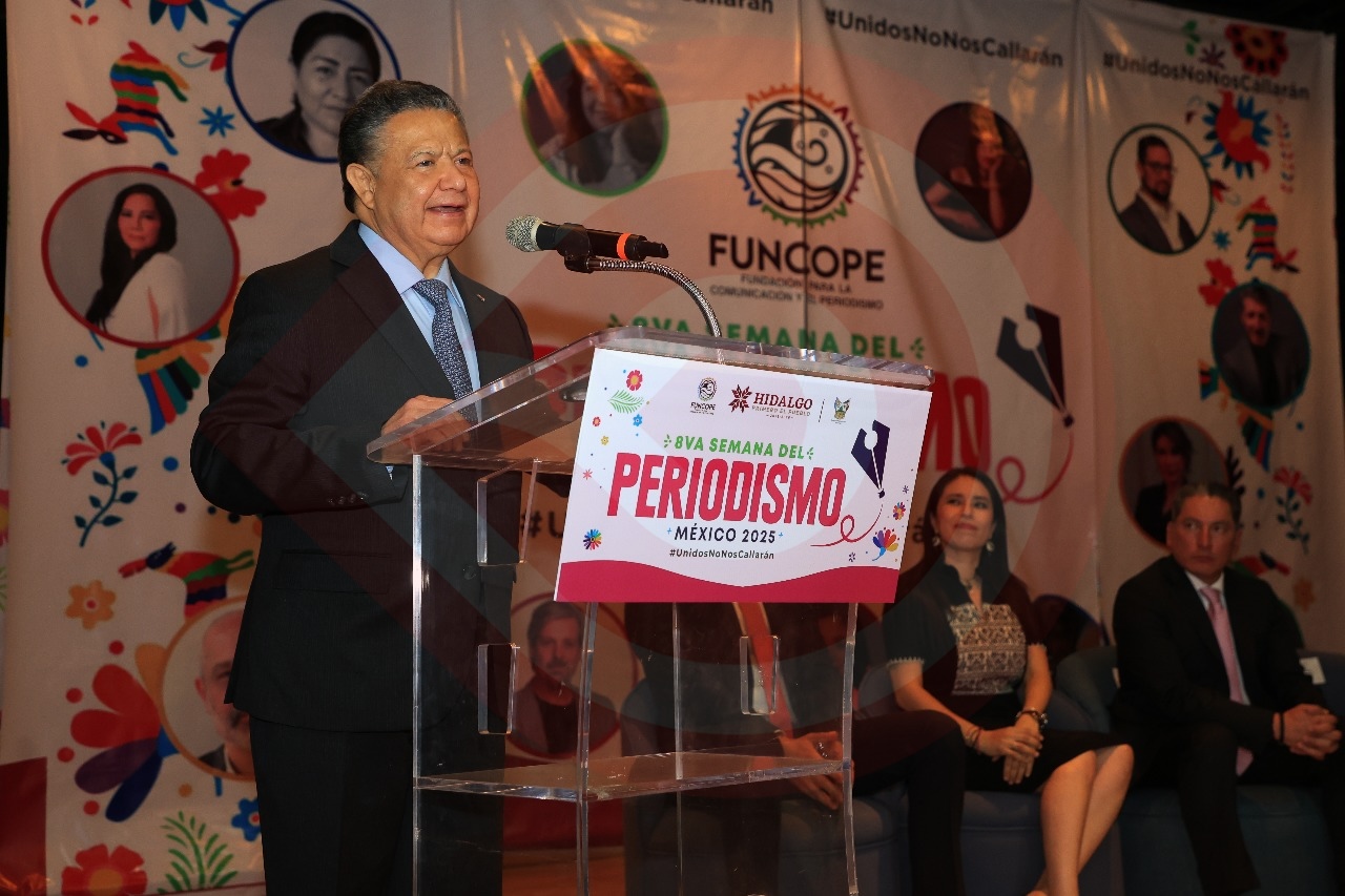Pachuca de Soto, Hgo.- En el marco de la 8va Semana del Periodismo México 2025, el gobernador de Hidalgo, Julio Menchaca, destacó la importancia de la labor periodística y reafirmó el compromiso de su administración con la libertad de expresión.