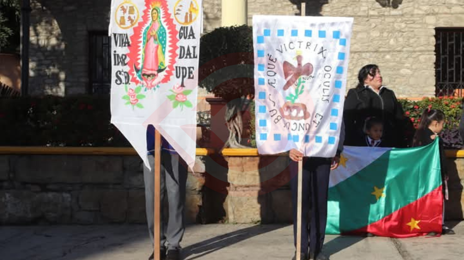 El acto cívico, tuvo efecto a las 08:00 horas, en la parte frontal del Ayuntamiento, precisamente en donde se encuentra la asta del Lábaro Patrio; durante el cual los alumnos portaron diferentes estandartes y banderas relacionadas con las gestas transcendentales que han forjado el país.