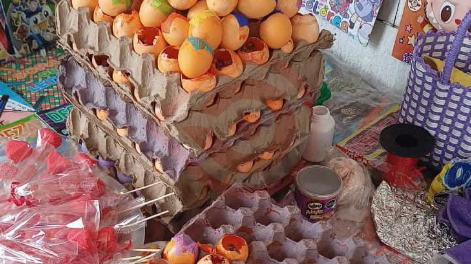 Un elemento importante son los cascarones, se utilizan materiales como el nejayoye para cerrar los cascarones que es un material que sale del nixtamal (maíz), plumas de guajolote para pintarlos, pintura anilina combinada con aguardiente, así como confeti o harina para rellenarlos, este es un elemento indispensable en esta fiesta.