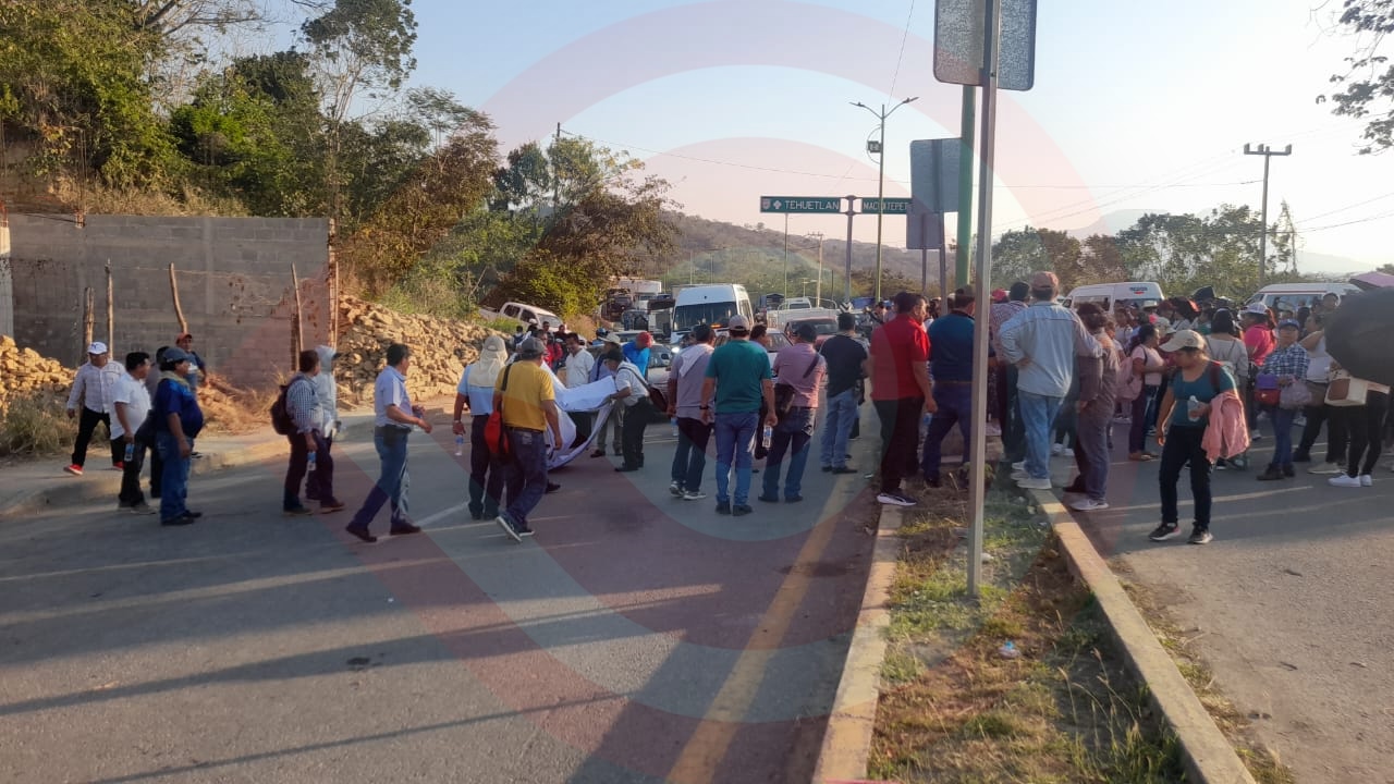 Huejutla, Hgo.- Decenas de trabajadores de la educación, integrantes del Movimiento de Base provenientes de diversos municipios de la Sierra y Huasteca de Hidalgo bloquearon por algunas horas de la tarde, de este viernes, la carretera federal México – Tampico a la altura del Crucero de las Huastecas.
