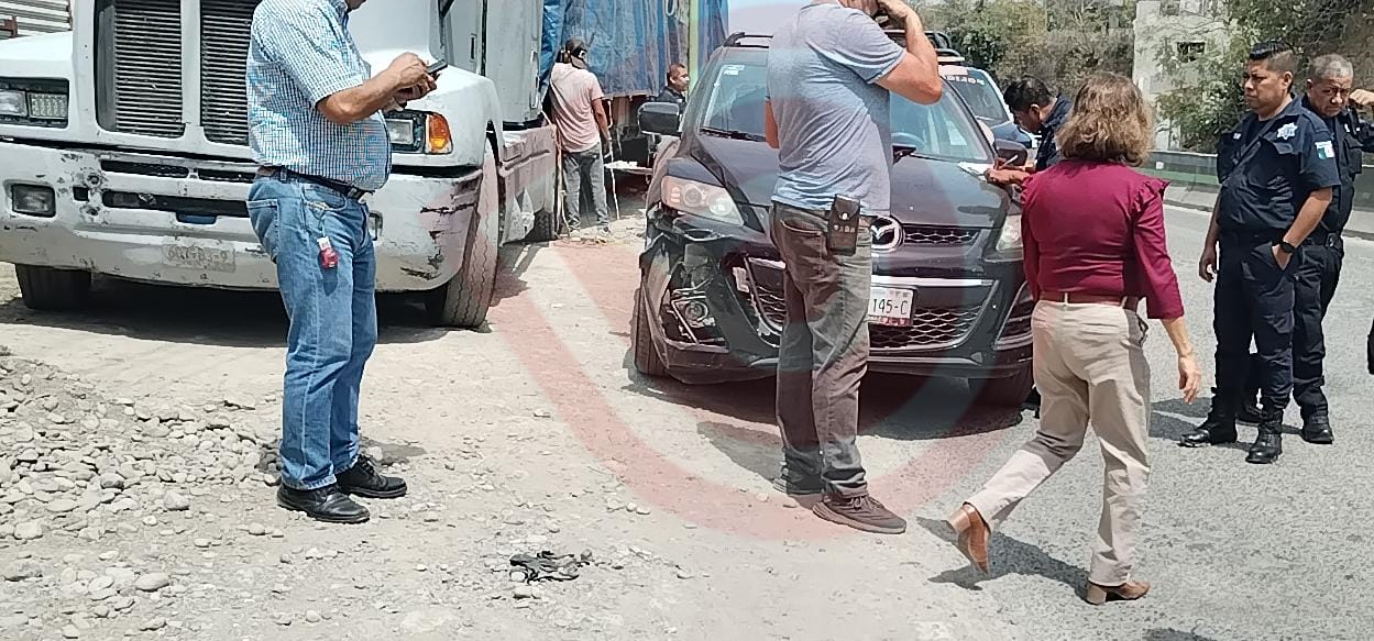 Fue alrededor de las 11:20 horas de la mañana de este miércoles, cuando se registró este percance, en frente de la referida gasolinera, donde una mujer, quien tripulaba su camioneta, color negro, tipo Mazda, al darse la vuelta en “U” fue impactada por un tráiler.