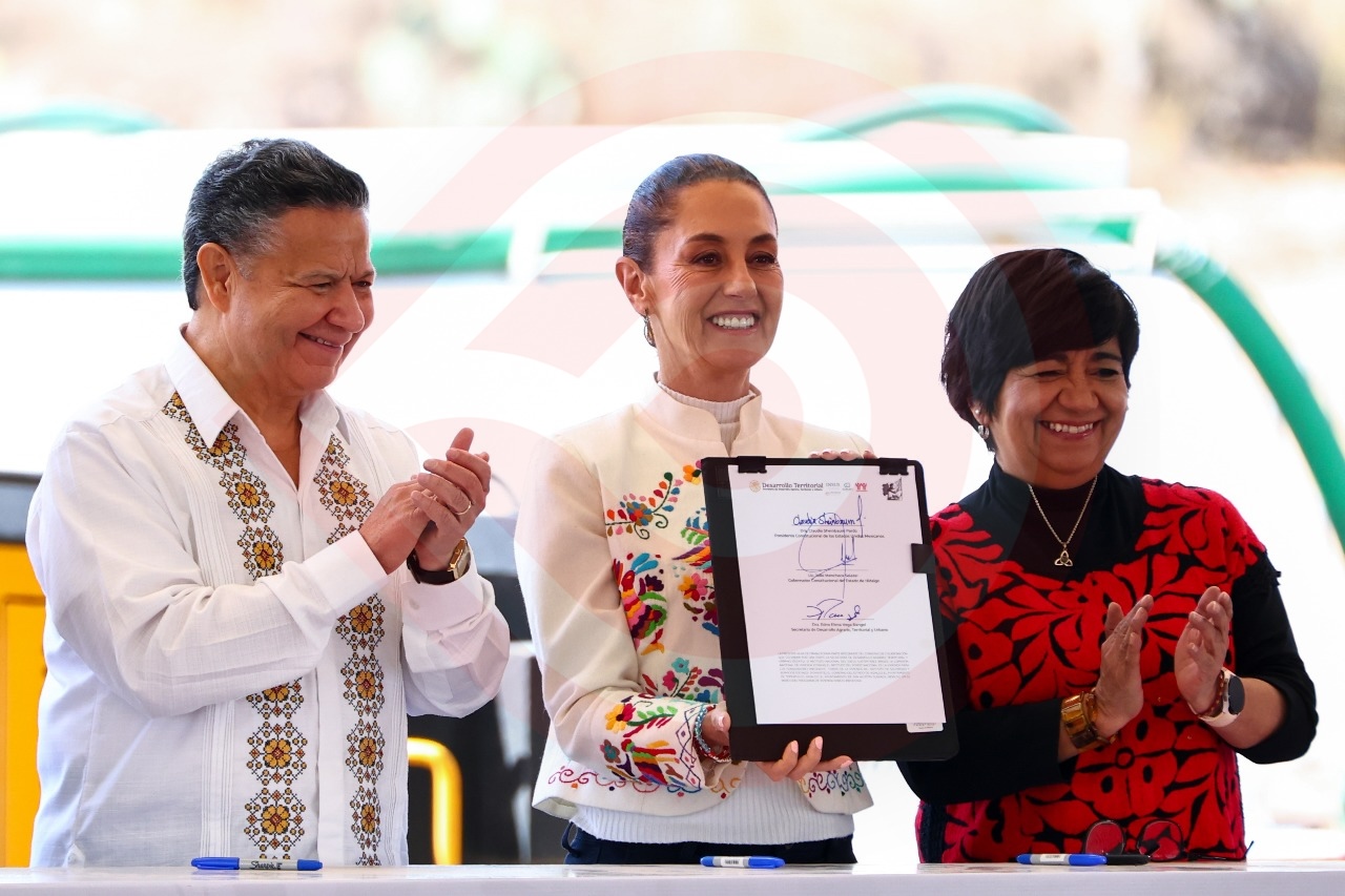 San Agustín Tlaxiaca, Hgo.- En reconocimiento al derecho humano de poder acceder a una vivienda digna, la presidenta de México, Claudia Sheinbaum Pardo, y el gobernador Julio Menchaca encabezaron la firma del convenio y el banderazo de arranque del programa federal “Vivienda para el Bienestar”.
