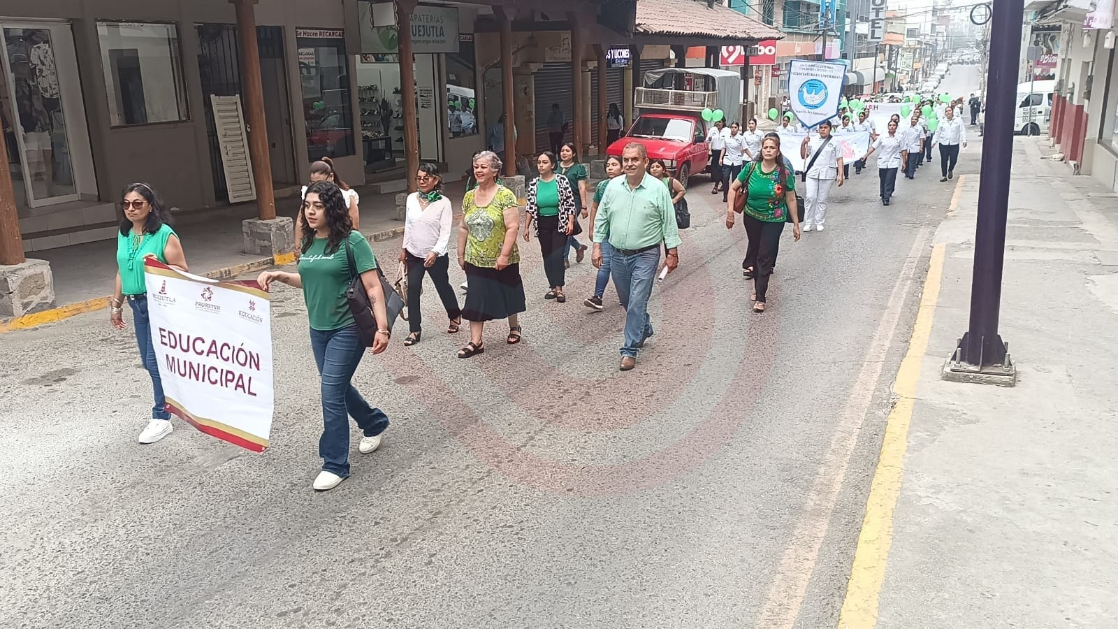 En el desfile se contó con la presencia del personal del Centro de Salud IMSS Bienestar en Huejutla, del Sistema DIF Municipal, del Instituto Tiozihual y de la UAEH.
