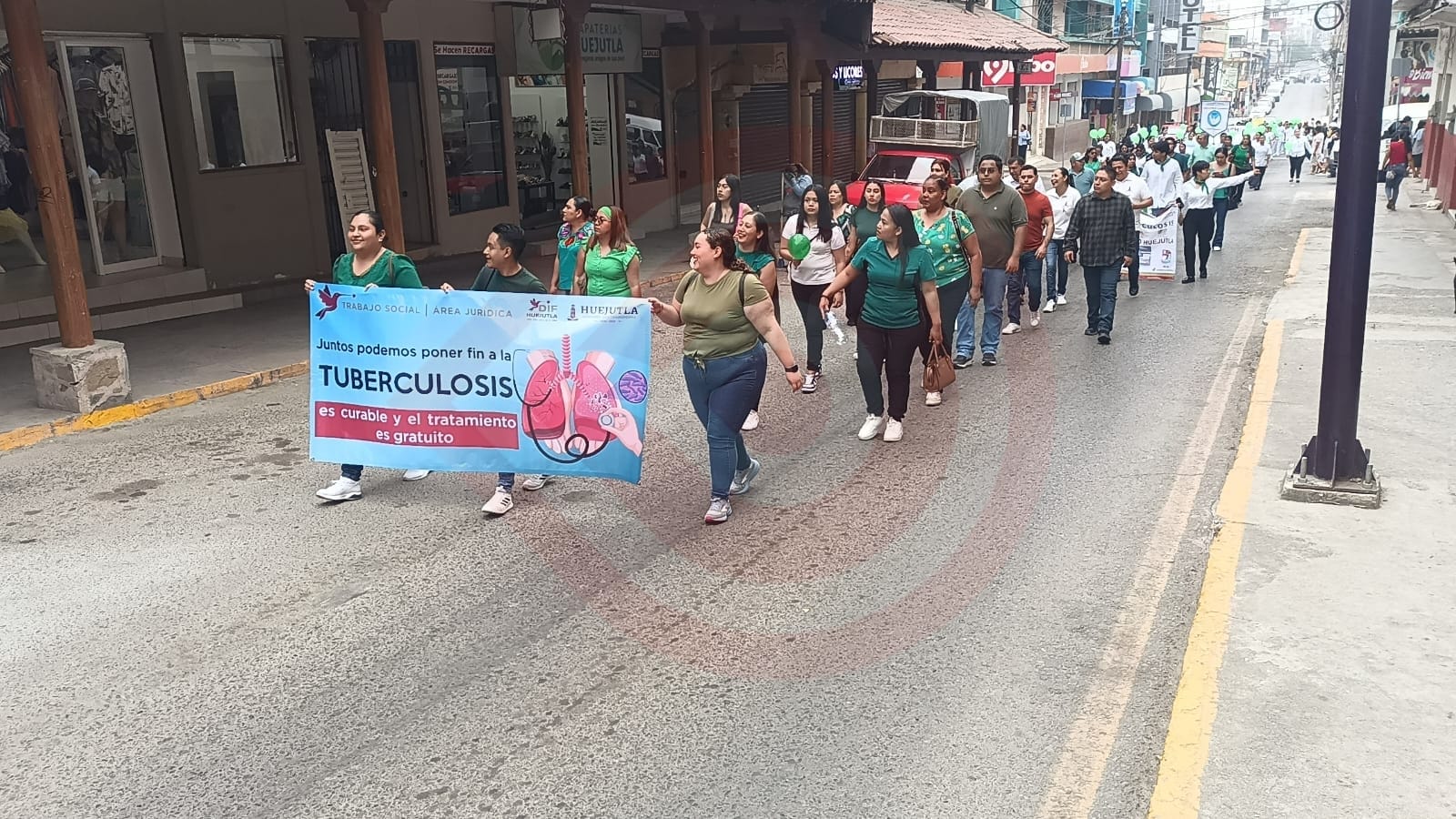 Huejutla, Hidalgo – Alumnos, maestros, personal del Centro de Salud y de la presidencia municipal de Huejutla de Reyes participaron en un desfile con motivo del día mundial de la tuberculosis.