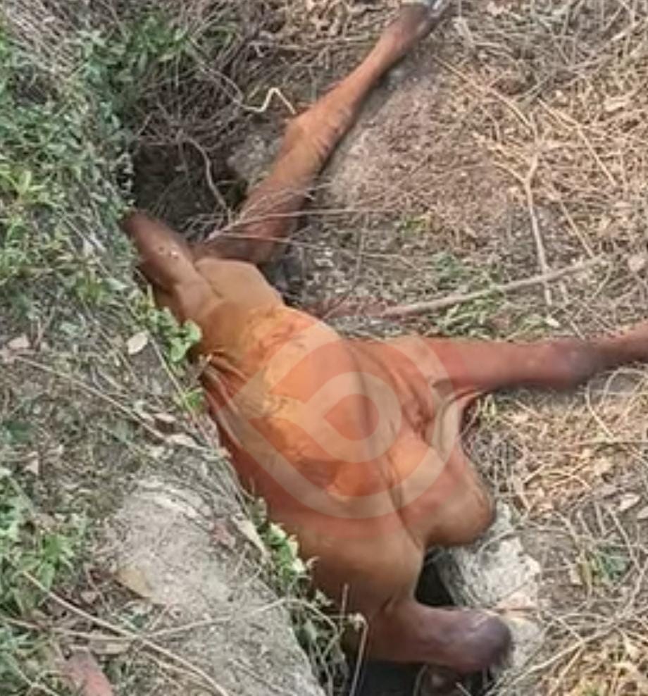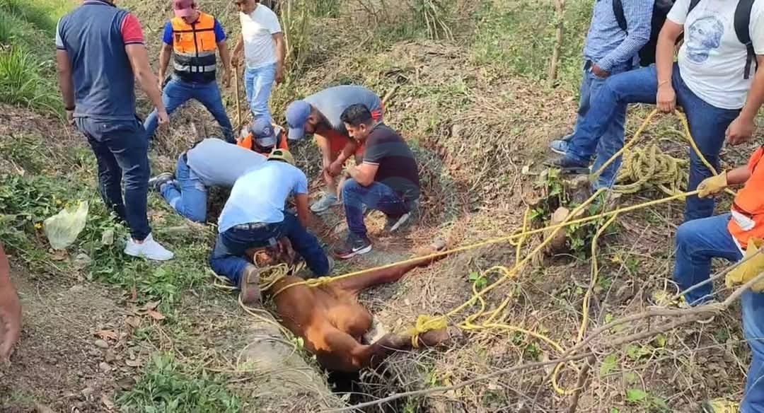 Fueron vecinos de esa colonia quienes reportaron que sobre la referida vialidad un semoviente cayó a un canal y era urgente rescatarlo antes de que terminará muriendo, de inmediato los Bomberos y Protección Civil Municipal llegaron al lugar y con cuerdas lograron rescatar el animal.