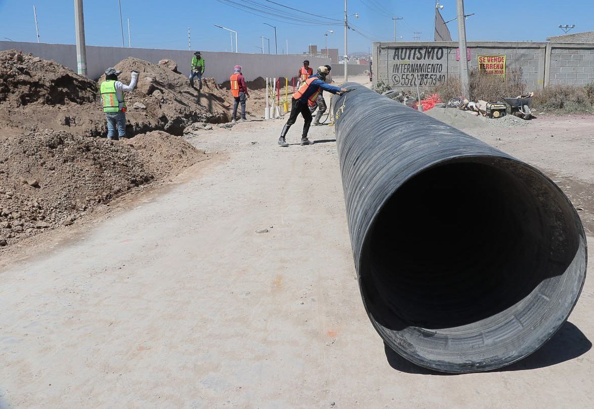 En la localidad Bosques de Matilde, municipio de Zempoala, se llevan a cabo los trabajos para la sustitución de 673.32 metros de tubería con un diámetro de 36 pulgadas, y se reemplazaron 9 pozos de visita.