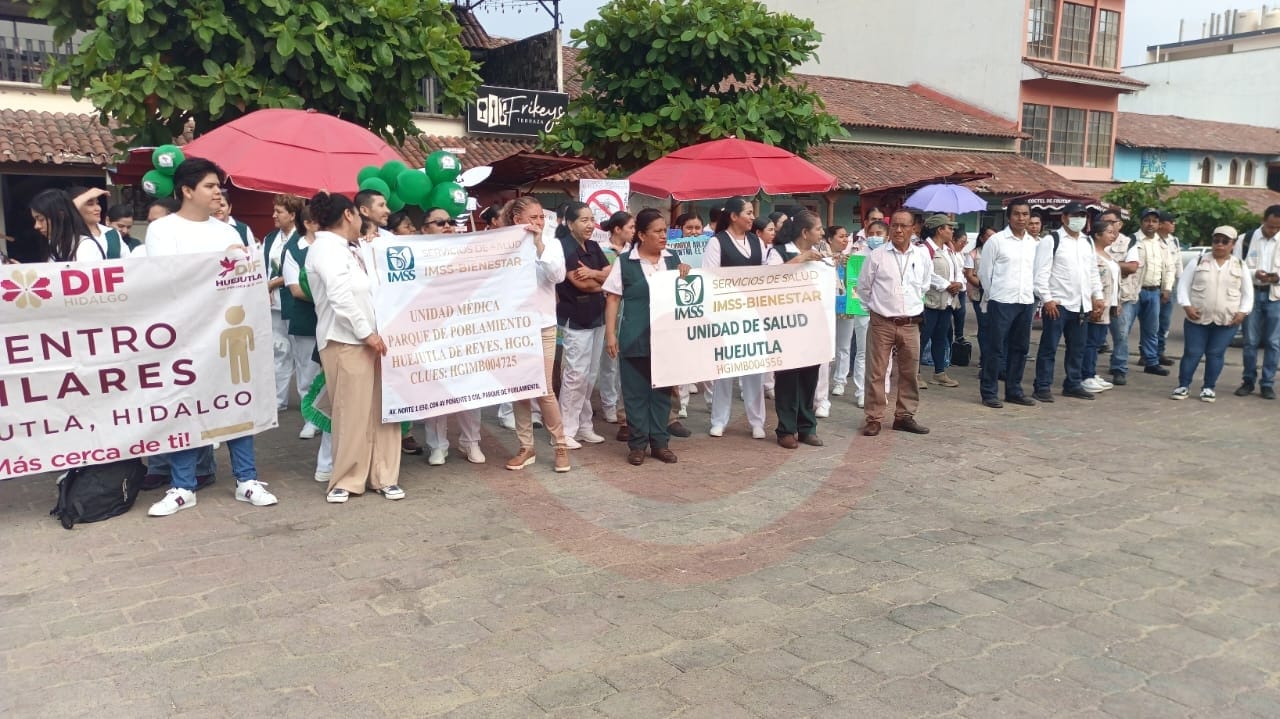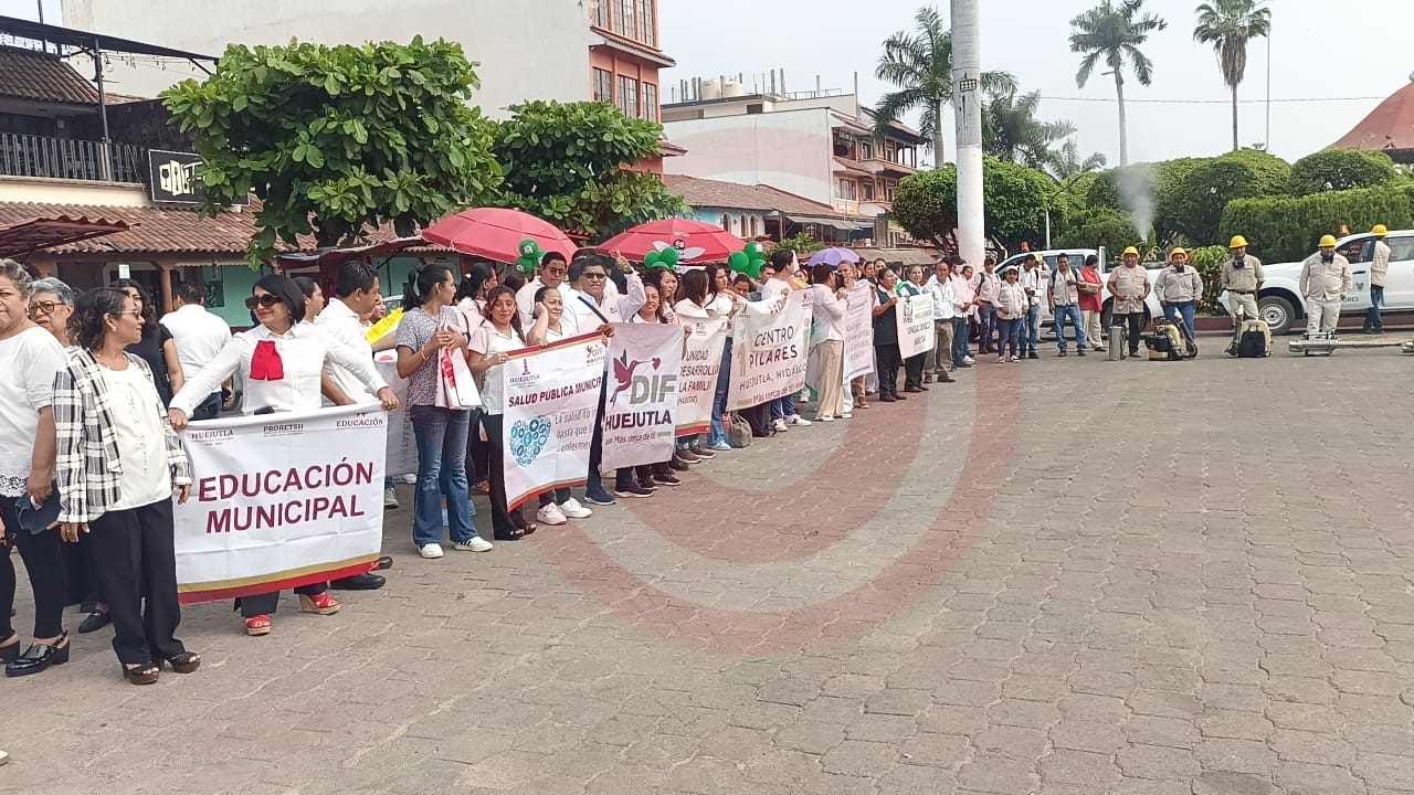 Los trabajadores del sector salud y de las diversas áreas de la Presidencia Municipal de Huejutla desfilaron desde la Plazuela Juárez hasta llegar a la plaza 21 de mayo, en dónde se procedió en dar el banderazo de salida a las actividades que se habrán de fortalecer de una manera permanente por las colonias y comunidades.