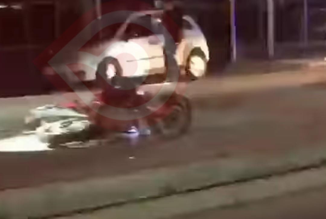 Fue la noche de este martes que el conductor de una motocicleta, al no conservar su distancia, se estrelló en la parte trasera de un coche Volkswagen, Jetta, color gris; por el choque el motorista terminó tirado en la cinta asfáltica con diversas lesiones.