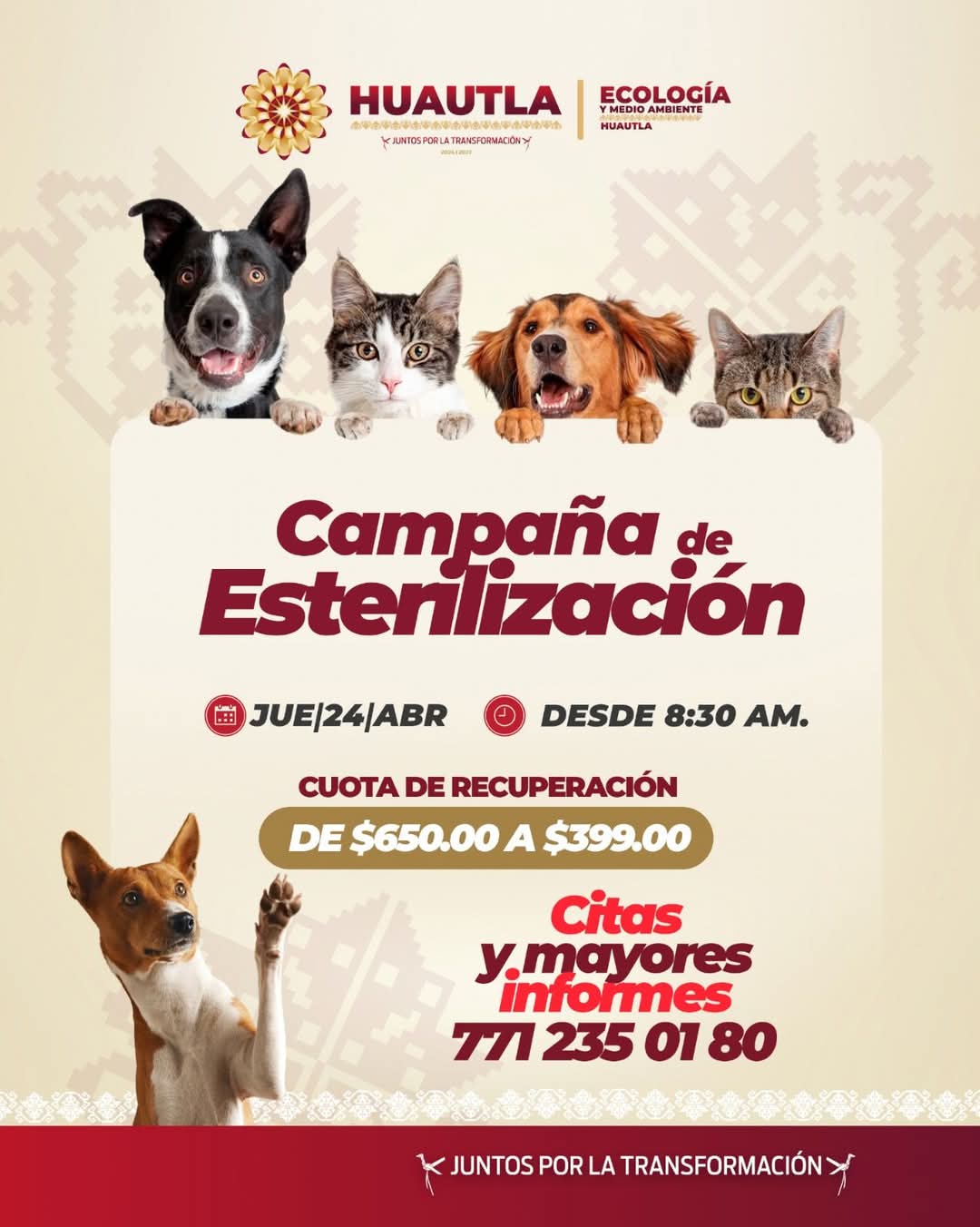 Gracias a la contribución económica del ayuntamiento municipal, se subsidiará una parte del costo de la esterilización.
