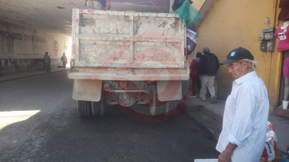 Material de construcción obstruye paso peatonal en la Capitán