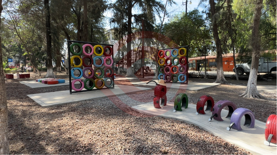 La obra incluyó la instalación de 20 juegos infantiles y mobiliario artesanal como columpios, bancos y estructuras recreativas. También se construyeron guarniciones y andadores con acabados sustentables que integran elementos estéticos y ecológicos, pensados para el disfrute de niñas, niños, personas adultas mayores y toda la comunidad.